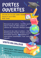 Le collège organise ses portes ouvertes samedi 11 avril 2026, de 9h00 à 12h00.